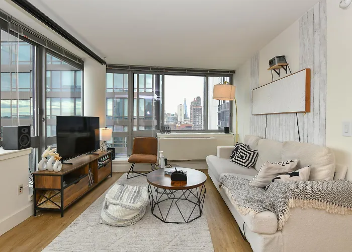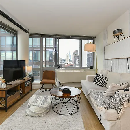 Este apartamento de 70 m², Modern Times Square 1 Bedroom Retreat Nueva York, es un lugar estupendo para alojarse en el barrio Manhattan, a unos 25 minutos a pie del Edificio Empire State.